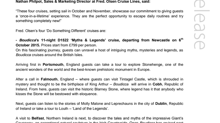 ‘Do Something Different’ this autumn with Fred. Olsen Cruise Lines